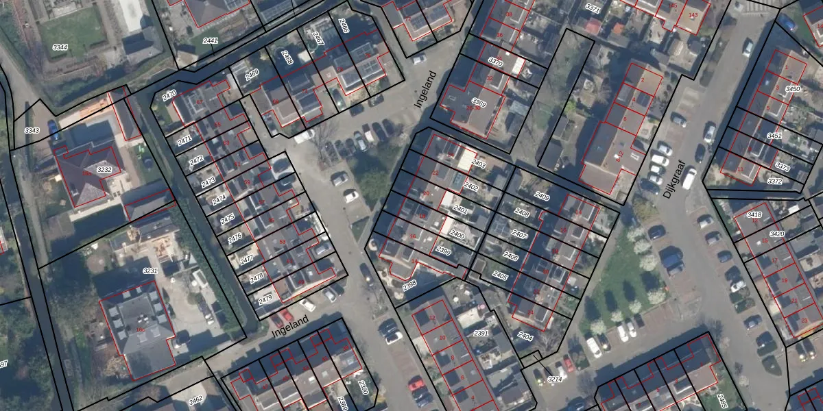 Het perceel waarop Ingeland 18 staat heeft een oppervlakte van 137 m². Dit is een middelgroot perceel. De perceeloppervlakte wordt geregistreerd door het Kadaster. Gedetailleerde informatie over de maten van dit perceel kunt u vinden in het rapport Kadastrale kaart met maatvoering van Ingeland 18.