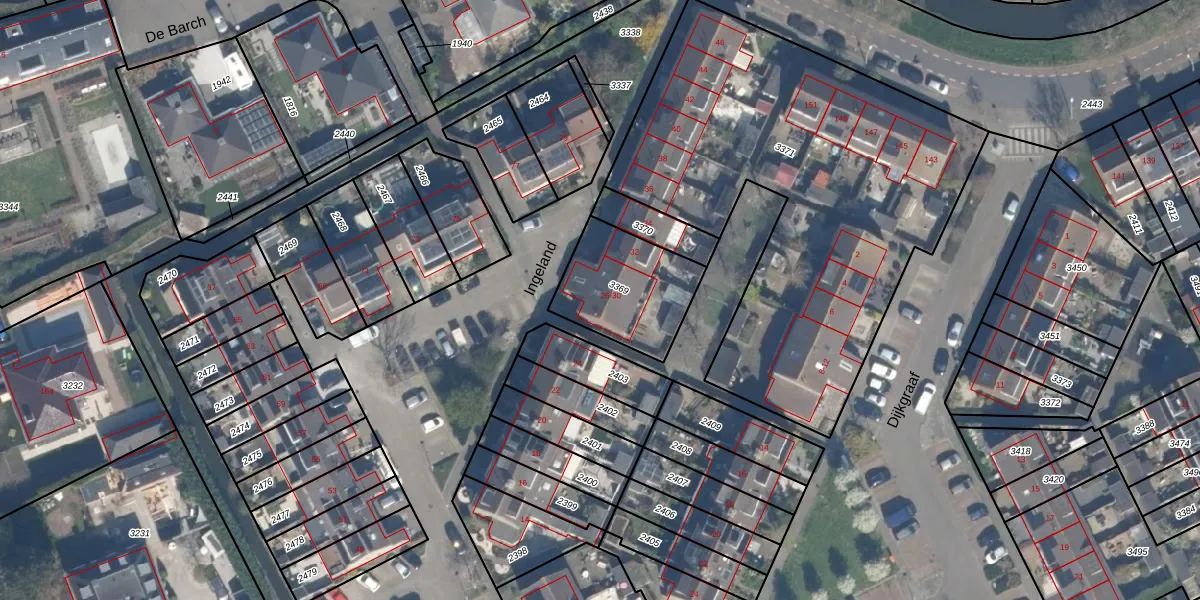 Het perceel waarop Ingeland 26 staat heeft een oppervlakte van 365 m². Dit is een groot perceel. De perceeloppervlakte wordt geregistreerd door het Kadaster. Gedetailleerde informatie over de maten van dit perceel kunt u vinden in het rapport Kadastrale kaart met maatvoering van Ingeland 26.