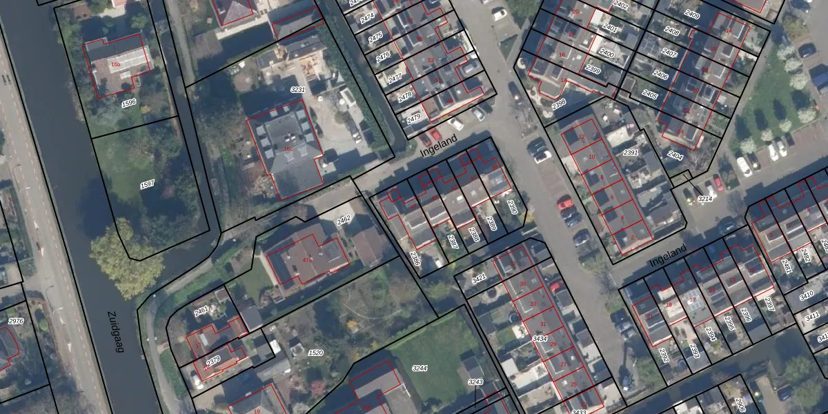 Het perceel waarop Ingeland 47 staat heeft een oppervlakte van 203 m². Dit is een middelgroot perceel. De perceeloppervlakte wordt geregistreerd door het Kadaster. Gedetailleerde informatie over de maten van dit perceel kunt u vinden in het rapport Kadastrale kaart met maatvoering van Ingeland 47.