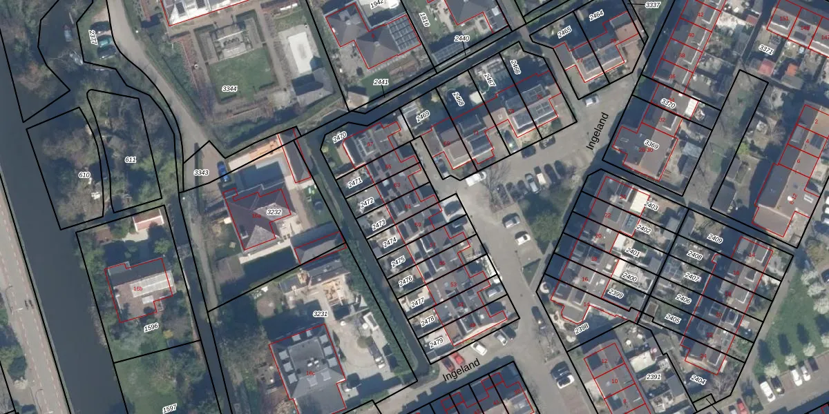 Het perceel waarop Ingeland 61 staat heeft een oppervlakte van 106 m². Dit is een middelgroot perceel. De perceeloppervlakte wordt geregistreerd door het Kadaster. Gedetailleerde informatie over de maten van dit perceel kunt u vinden in het rapport Kadastrale kaart met maatvoering van Ingeland 61.