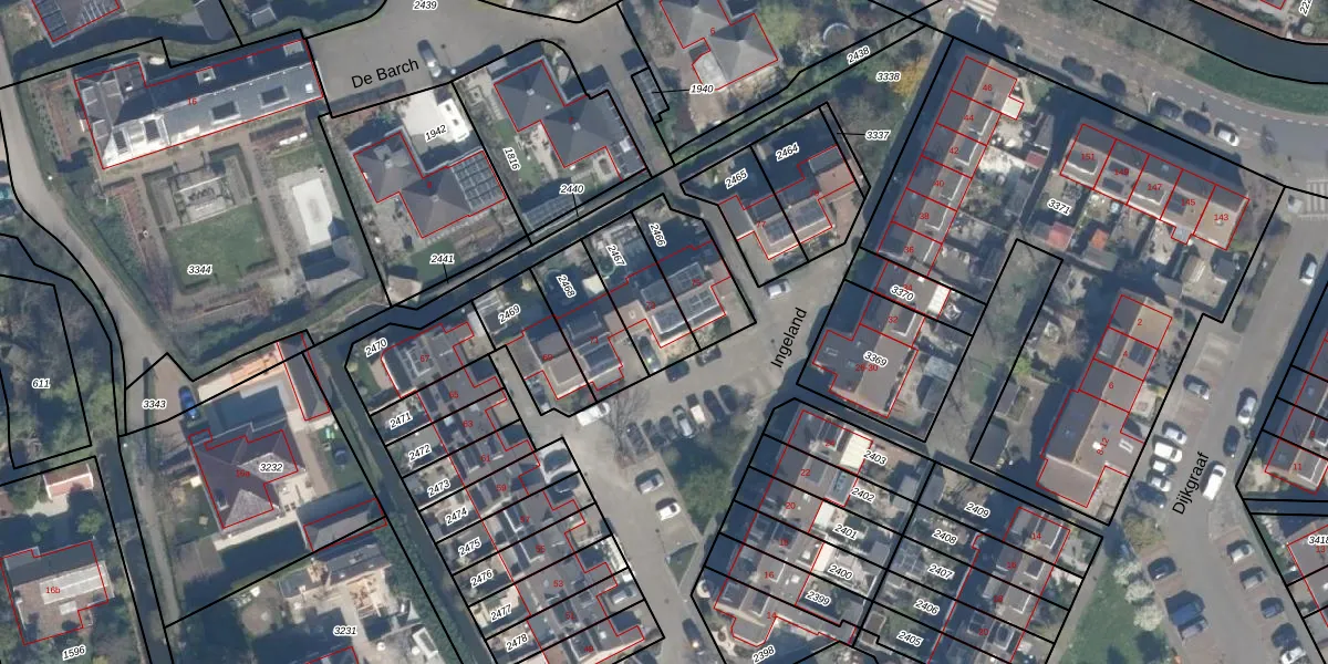 Gebruik de zoekbalk of klik op een perceel voor informatie over de adressen binnen dit perceel.