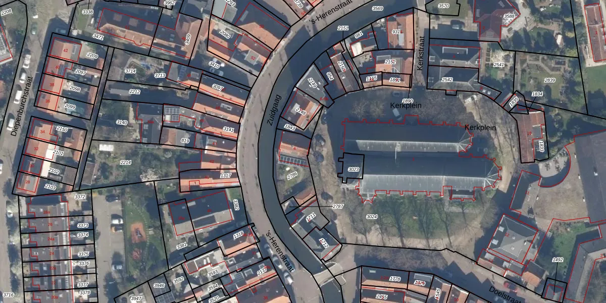 Gebruik de zoekbalk of klik op een perceel voor informatie over de adressen binnen dit perceel.