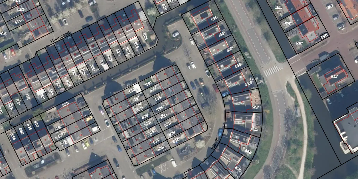 Gebruik de zoekbalk of klik op een perceel voor informatie over de adressen binnen dit perceel.