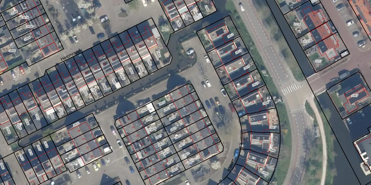 Gebruik de zoekbalk of klik op een perceel voor informatie over de adressen binnen dit perceel.