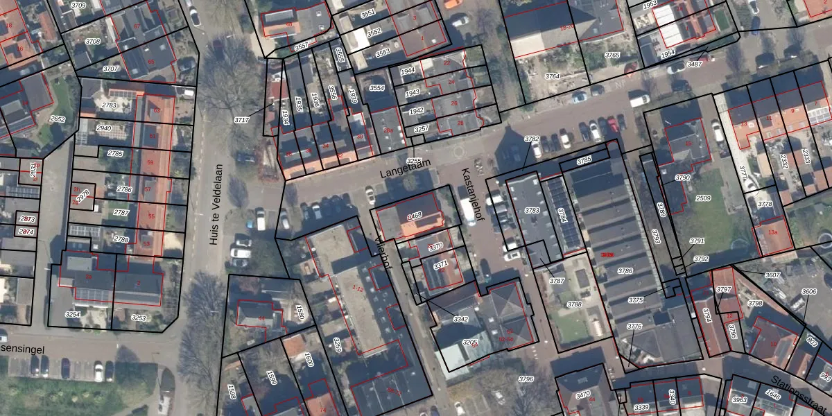 Gebruik de zoekbalk of klik op een perceel voor informatie over de adressen binnen dit perceel.
