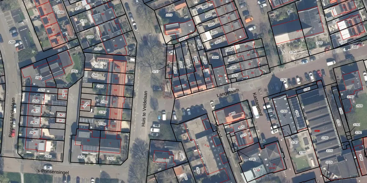 Gebruik de zoekbalk of klik op een perceel voor informatie over de adressen binnen dit perceel.