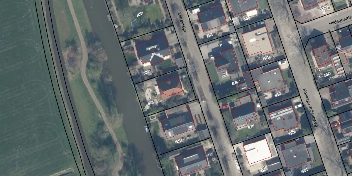 Het perceel waarop Meresteijn 13 staat heeft een oppervlakte van 603 m². Dit is een groot perceel. De perceeloppervlakte wordt geregistreerd door het Kadaster. Gedetailleerde informatie over de maten van dit perceel kunt u vinden in het rapport Kadastrale kaart met maatvoering van Meresteijn 13.