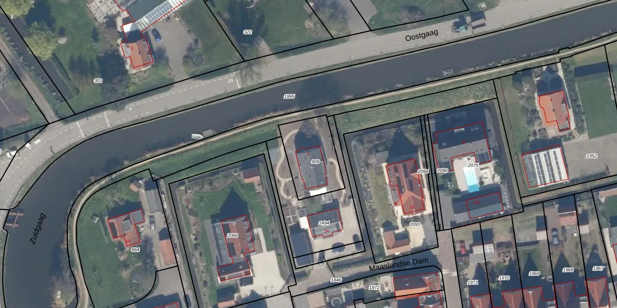 Oostgaag 2 is gelegen op kadastraal perceel MLD00I909. Deze kadastrale aanduiding is uniek en wordt gebruikt door het Kadaster om eigendomsrechten en andere zakelijke rechten vast te leggen. Het perceel maakt onderdeel uit van de kadastrale gemeente Maasland.