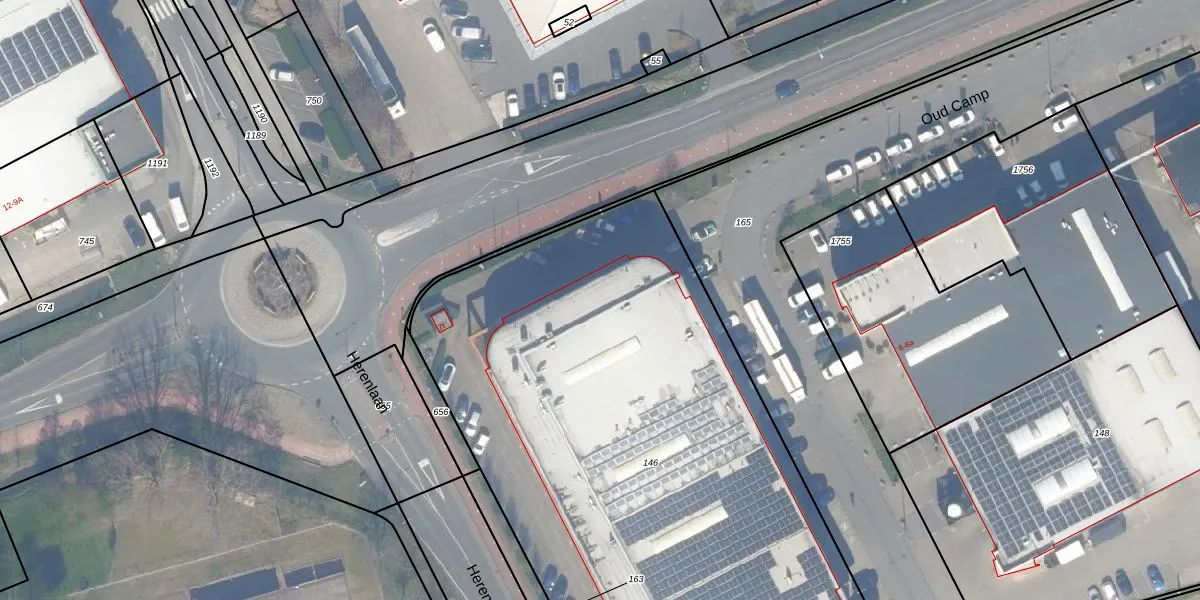 Het perceel waarop Oud Camp 5-b staat heeft een oppervlakte van 3996 m². Dit is een zeer groot perceel. De perceeloppervlakte wordt geregistreerd door het Kadaster. Gedetailleerde informatie over de maten van dit perceel kunt u vinden in het rapport Kadastrale kaart met maatvoering van Oud Camp 5-b.