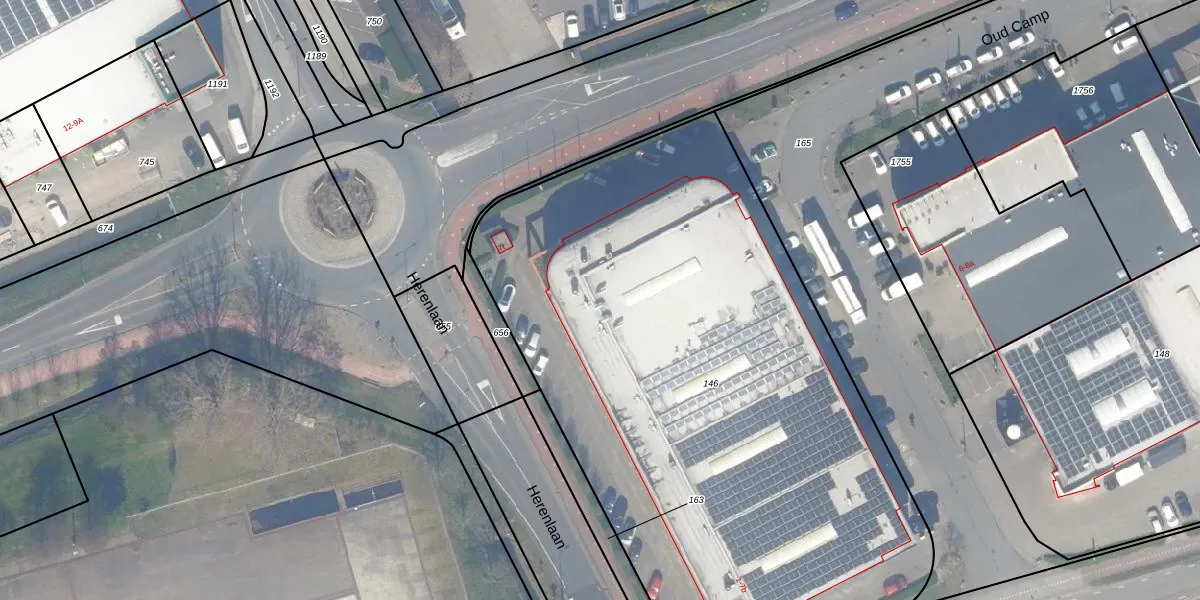 Het perceel waarop Oud Camp 7-a staat heeft een oppervlakte van 3996 m². Dit is een zeer groot perceel. De perceeloppervlakte wordt geregistreerd door het Kadaster. Gedetailleerde informatie over de maten van dit perceel kunt u vinden in het rapport Kadastrale kaart met maatvoering van Oud Camp 7-a.