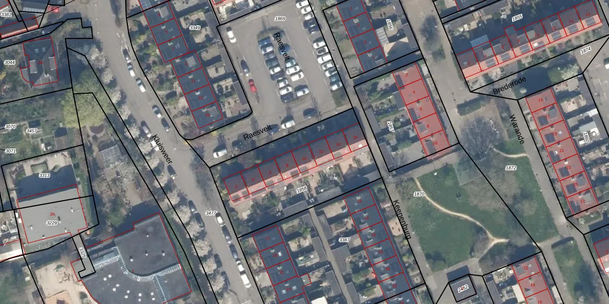 Raesvelt 10 is gelegen op kadastraal perceel MLD00C1858. Deze kadastrale aanduiding is uniek en wordt gebruikt door het Kadaster om eigendomsrechten en andere zakelijke rechten vast te leggen. Het perceel maakt onderdeel uit van de kadastrale gemeente Maasland.