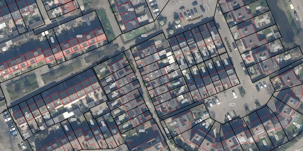 Gebruik de zoekbalk of klik op een perceel voor informatie over de adressen binnen dit perceel.
