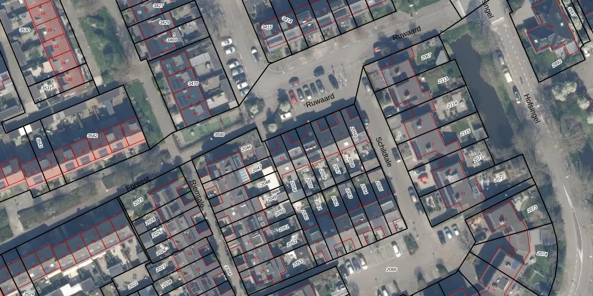 Gebruik de zoekbalk of klik op een perceel voor informatie over de adressen binnen dit perceel.