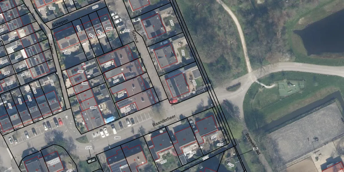 Gebruik de zoekbalk of klik op een perceel voor informatie over de adressen binnen dit perceel.