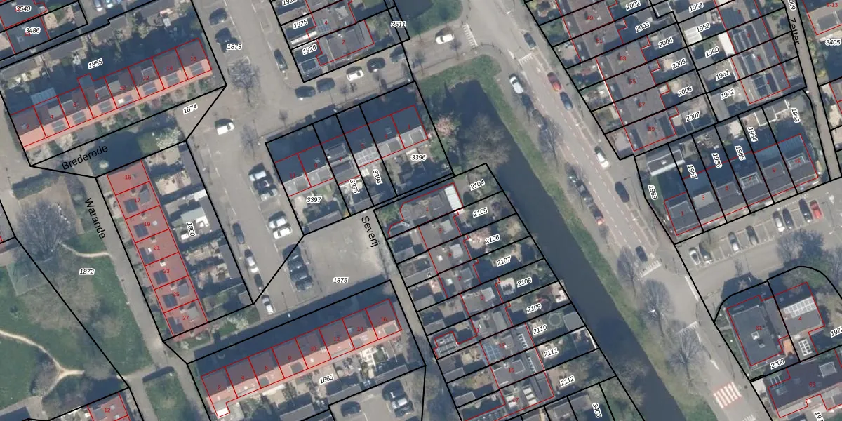Het perceel waarop Severij 1 staat heeft een oppervlakte van 217 m². Dit is een middelgroot perceel. De perceeloppervlakte wordt geregistreerd door het Kadaster. Gedetailleerde informatie over de maten van dit perceel kunt u vinden in het rapport Kadastrale kaart met maatvoering van Severij 1.