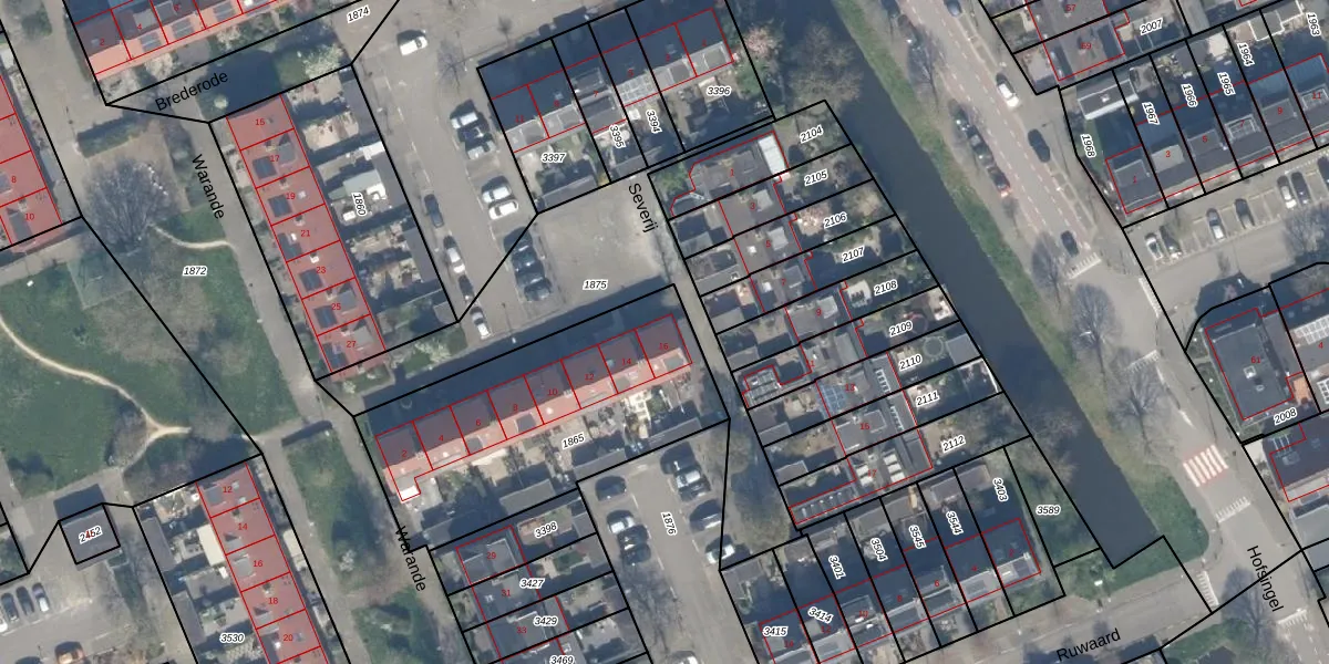 Het perceel waarop Severij 16 staat heeft een oppervlakte van 1178 m². Dit is een zeer groot perceel. De perceeloppervlakte wordt geregistreerd door het Kadaster. Gedetailleerde informatie over de maten van dit perceel kunt u vinden in het rapport Kadastrale kaart met maatvoering van Severij 16.