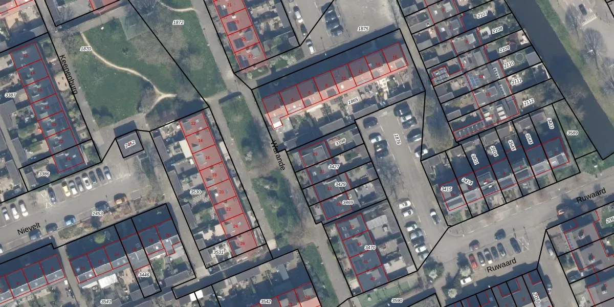 Het perceel waarop Warande 29 staat heeft een oppervlakte van 177 m². Dit is een middelgroot perceel. De perceeloppervlakte wordt geregistreerd door het Kadaster. Gedetailleerde informatie over de maten van dit perceel kunt u vinden in het rapport Kadastrale kaart met maatvoering van Warande 29.