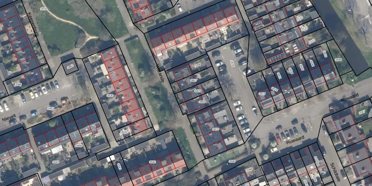 Warande 33 is gelegen op kadastraal perceel MLD00C3429. Deze kadastrale aanduiding is uniek en wordt gebruikt door het Kadaster om eigendomsrechten en andere zakelijke rechten vast te leggen. Het perceel maakt onderdeel uit van de kadastrale gemeente Maasland.