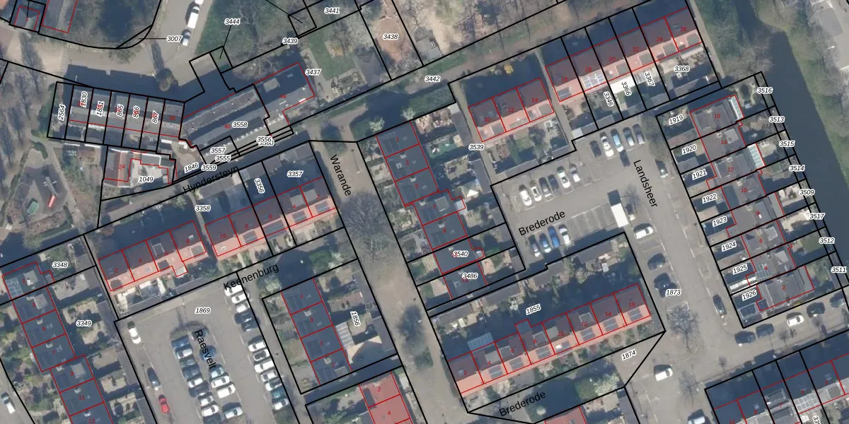 Het perceel waarop Warande 7 staat heeft een oppervlakte van 1510 m². Dit is een zeer groot perceel. De perceeloppervlakte wordt geregistreerd door het Kadaster. Gedetailleerde informatie over de maten van dit perceel kunt u vinden in het rapport Kadastrale kaart met maatvoering van Warande 7.