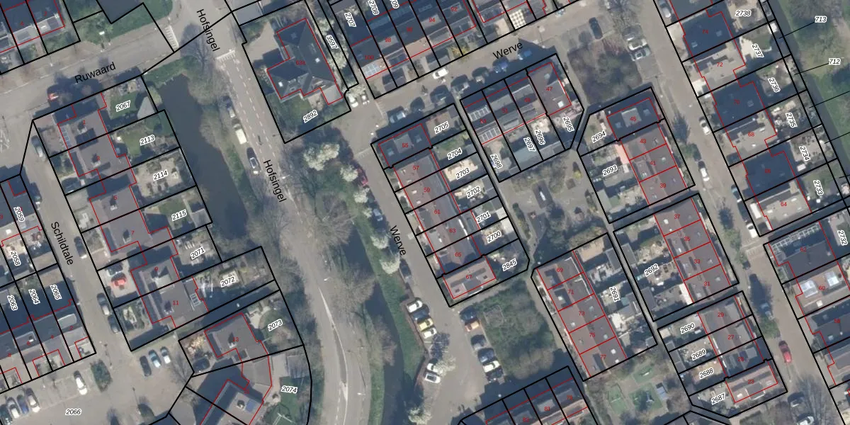 Het perceel waarop Werve 61 staat heeft een oppervlakte van 122 m². Dit is een middelgroot perceel. De perceeloppervlakte wordt geregistreerd door het Kadaster. Gedetailleerde informatie over de maten van dit perceel kunt u vinden in het rapport Kadastrale kaart met maatvoering van Werve 61.