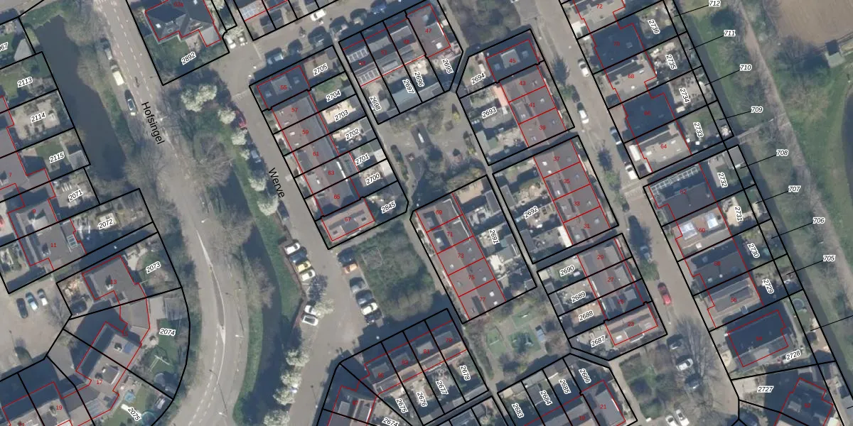 Het perceel waarop Werve 69 staat heeft een oppervlakte van 579 m². Dit is een groot perceel. De perceeloppervlakte wordt geregistreerd door het Kadaster. Gedetailleerde informatie over de maten van dit perceel kunt u vinden in het rapport Kadastrale kaart met maatvoering van Werve 69.