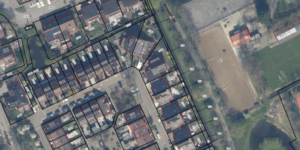 Gebruik de zoekbalk of klik op een perceel voor informatie over de adressen binnen dit perceel.
