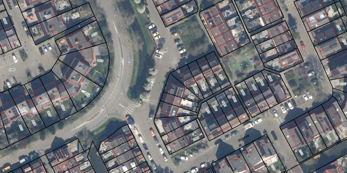 Het perceel waarop Werve 87 staat heeft een oppervlakte van 148 m². Dit is een middelgroot perceel. De perceeloppervlakte wordt geregistreerd door het Kadaster. Gedetailleerde informatie over de maten van dit perceel kunt u vinden in het rapport Kadastrale kaart met maatvoering van Werve 87.
