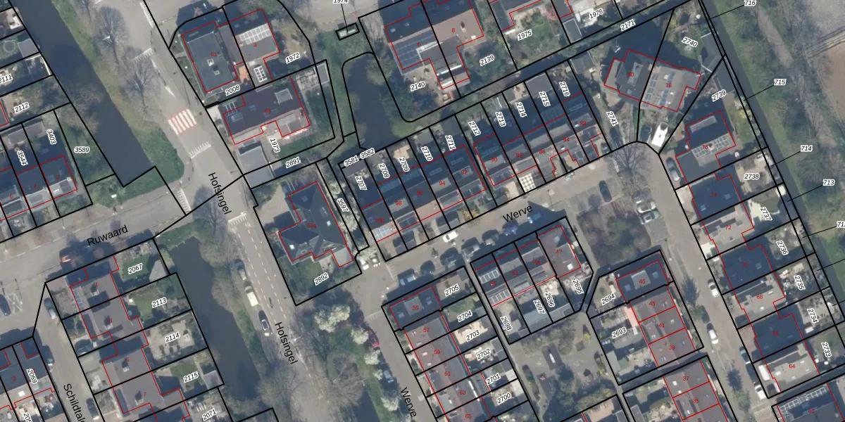 Het perceel waarop Werve 96 staat heeft een oppervlakte van 138 m². Dit is een middelgroot perceel. De perceeloppervlakte wordt geregistreerd door het Kadaster. Gedetailleerde informatie over de maten van dit perceel kunt u vinden in het rapport Kadastrale kaart met maatvoering van Werve 96.