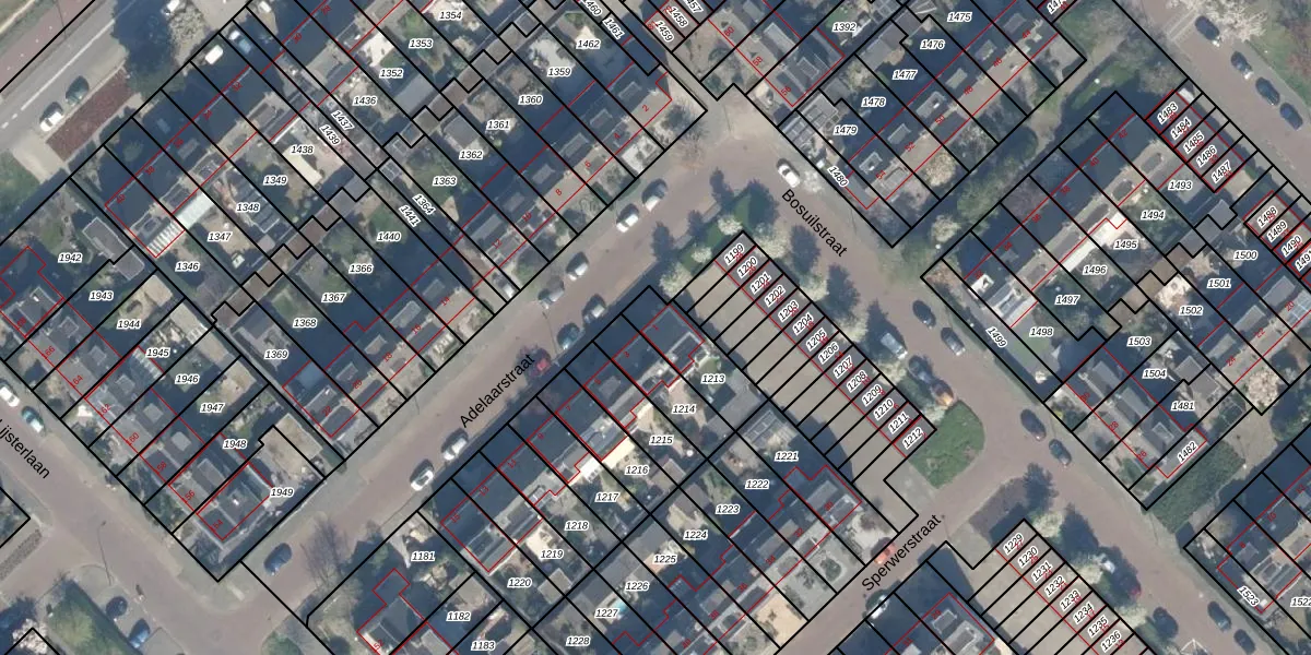 Het perceel waarop Adelaarstraat 1 staat heeft een oppervlakte van 176 m². Dit is een middelgroot perceel. De perceeloppervlakte wordt geregistreerd door het Kadaster. Gedetailleerde informatie over de maten van dit perceel kunt u vinden in het rapport Kadastrale kaart met maatvoering van Adelaarstraat 1.
