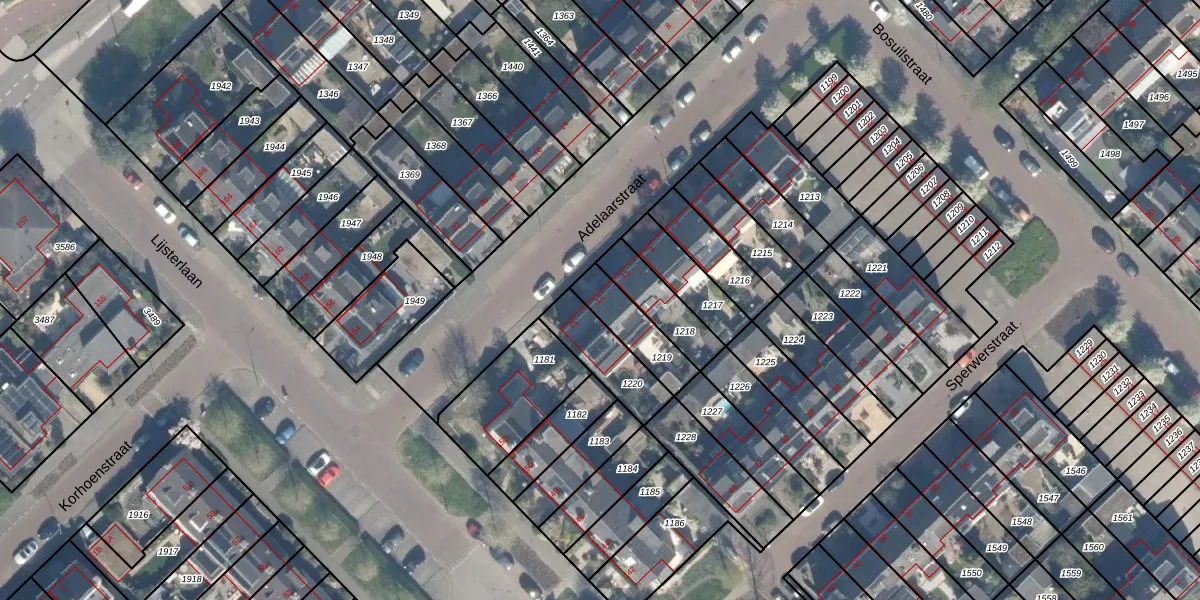 Gebruik de zoekbalk of klik op een perceel voor informatie over de adressen binnen dit perceel.