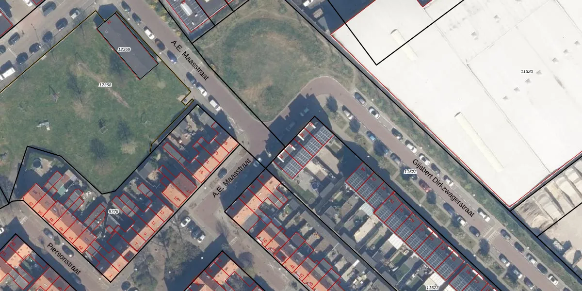 Het perceel waarop A.E. Maasstraat 24 staat heeft een oppervlakte van 3610 m². Dit is een zeer groot perceel. De perceeloppervlakte wordt geregistreerd door het Kadaster. Gedetailleerde informatie over de maten van dit perceel kunt u vinden in het rapport Kadastrale kaart met maatvoering van A.E. Maasstraat 24.