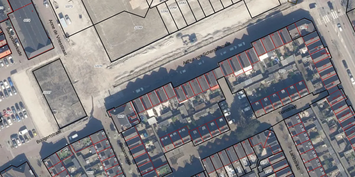 Het perceel waarop Arthur van Schendelstraat 16 staat heeft een oppervlakte van 6640 m². Dit is een zeer groot perceel. De perceeloppervlakte wordt geregistreerd door het Kadaster. Gedetailleerde informatie over de maten van dit perceel kunt u vinden in het rapport Kadastrale kaart met maatvoering van Arthur van Schendelstraat 16.