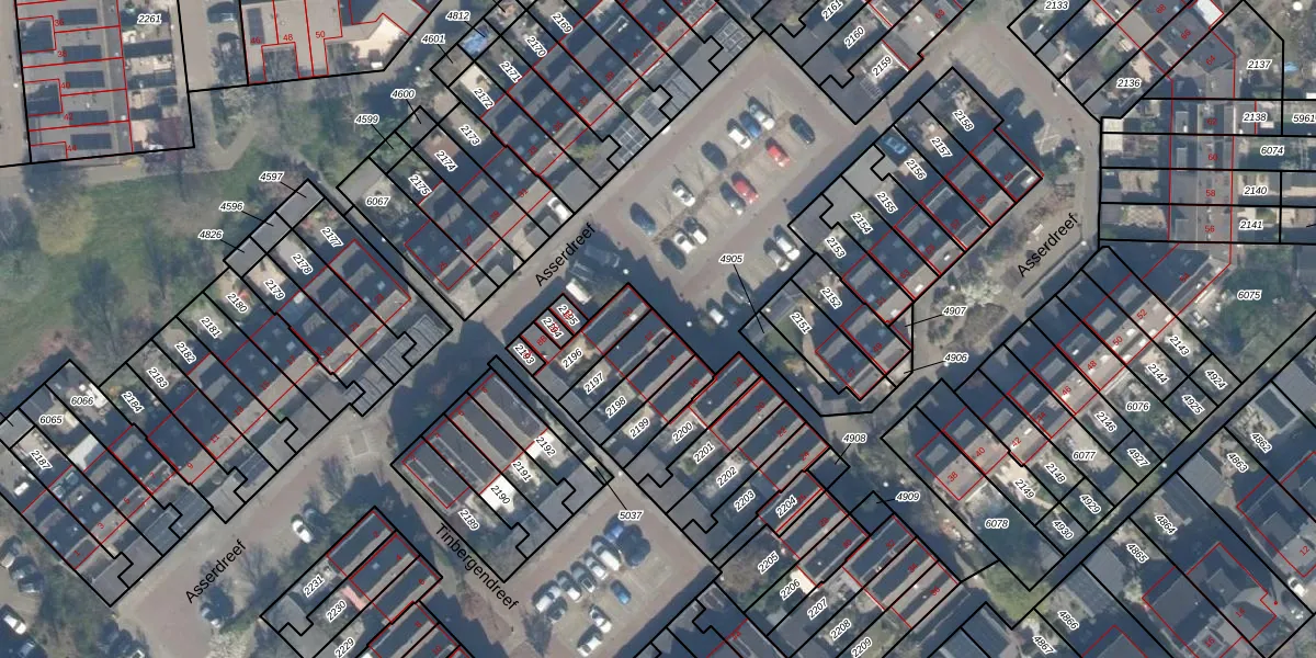 Het perceel waarop Asserdreef 12 staat heeft een oppervlakte van 98 m². Dit is een klein perceel. De perceeloppervlakte wordt geregistreerd door het Kadaster. Gedetailleerde informatie over de maten van dit perceel kunt u vinden in het rapport Kadastrale kaart met maatvoering van Asserdreef 12.