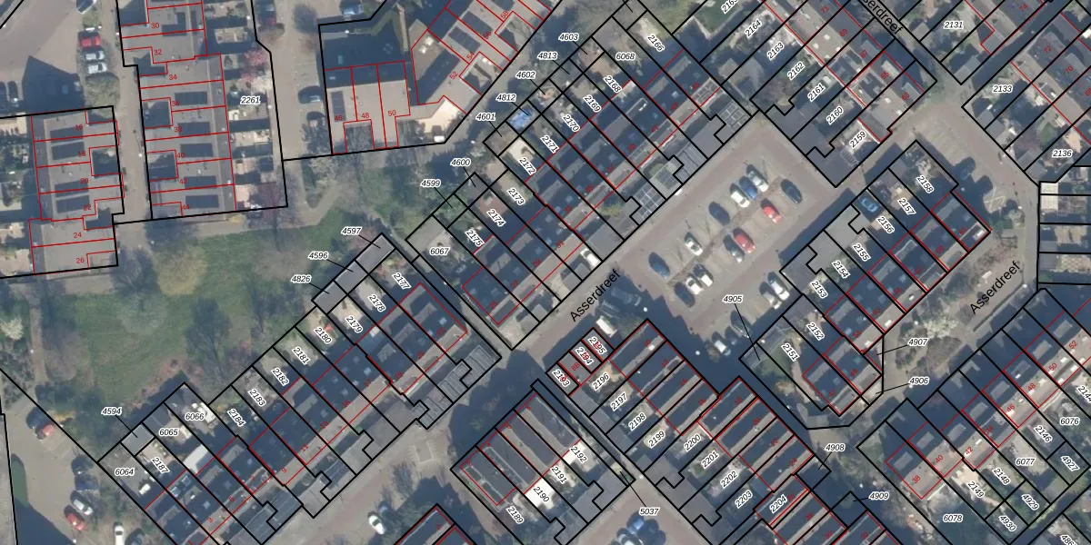 Asserdreef 29 is gelegen op kadastraal perceel MSS00A2174. Deze kadastrale aanduiding is uniek en wordt gebruikt door het Kadaster om eigendomsrechten en andere zakelijke rechten vast te leggen. Het perceel maakt onderdeel uit van de kadastrale gemeente Maassluis.