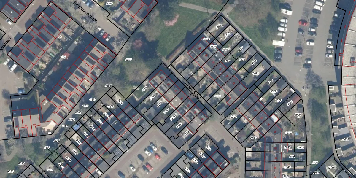 Asserdreef 71 is gelegen op kadastraal perceel MSS00A2163. Deze kadastrale aanduiding is uniek en wordt gebruikt door het Kadaster om eigendomsrechten en andere zakelijke rechten vast te leggen. Het perceel maakt onderdeel uit van de kadastrale gemeente Maassluis.