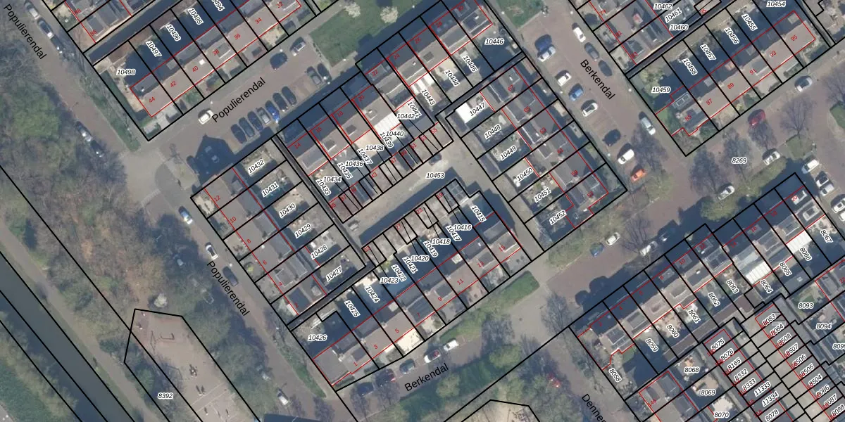 Het perceel waarop Berkendal 23 staat heeft een oppervlakte van 15 m². Dit is een klein perceel. De perceeloppervlakte wordt geregistreerd door het Kadaster. Gedetailleerde informatie over de maten van dit perceel kunt u vinden in het rapport Kadastrale kaart met maatvoering van Berkendal 23.