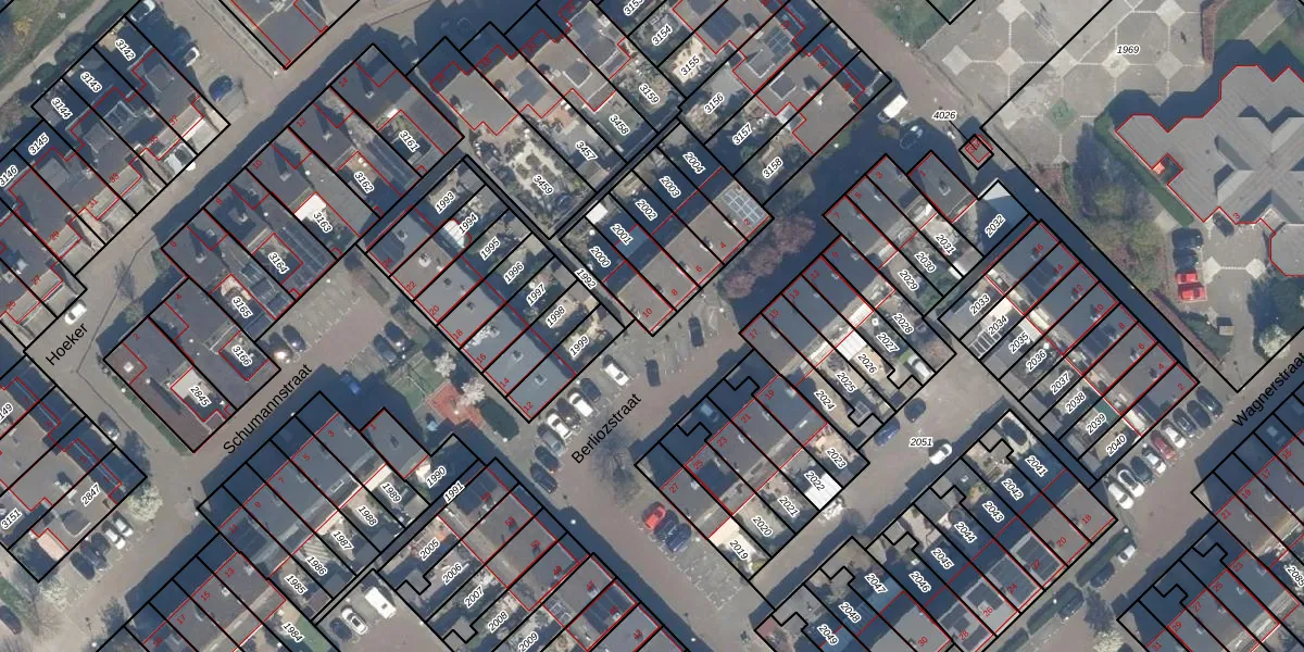 Gebruik de zoekbalk of klik op een perceel voor informatie over de adressen binnen dit perceel.