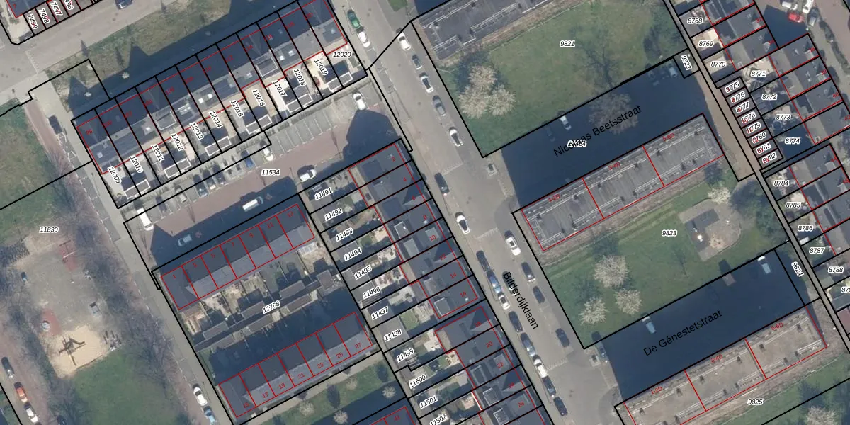 Gebruik de zoekbalk of klik op een perceel voor informatie over de adressen binnen dit perceel.