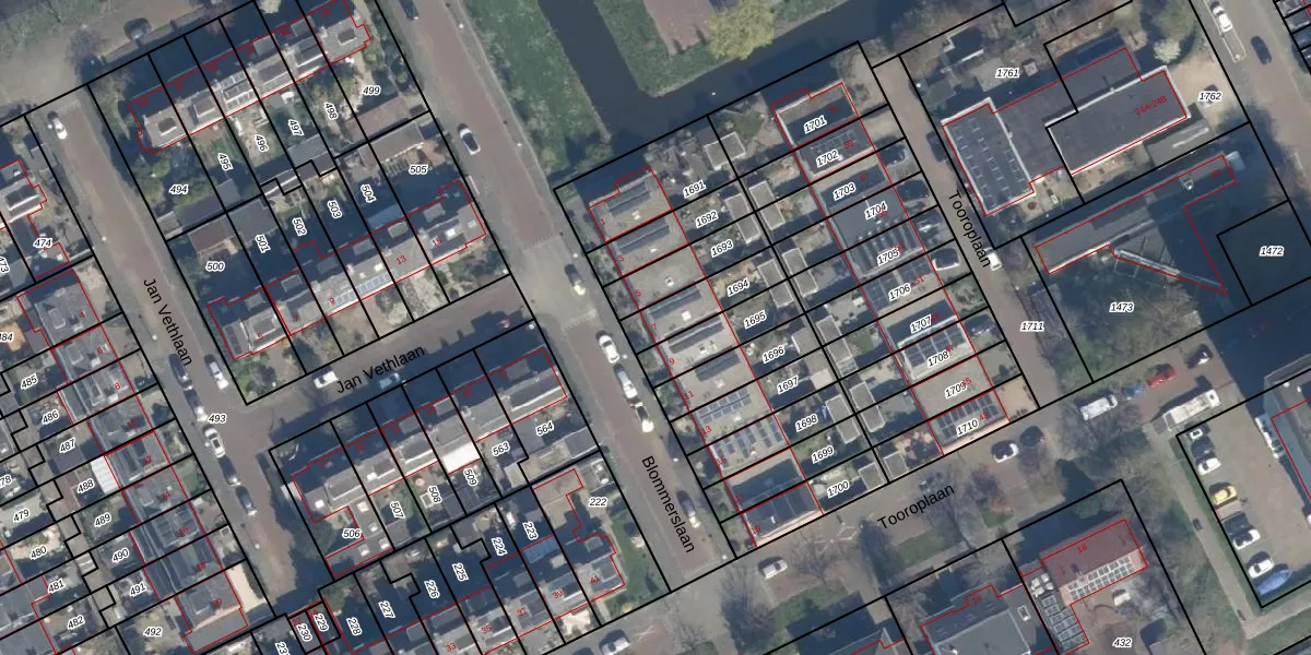 Gebruik de zoekbalk of klik op een perceel voor informatie over de adressen binnen dit perceel.