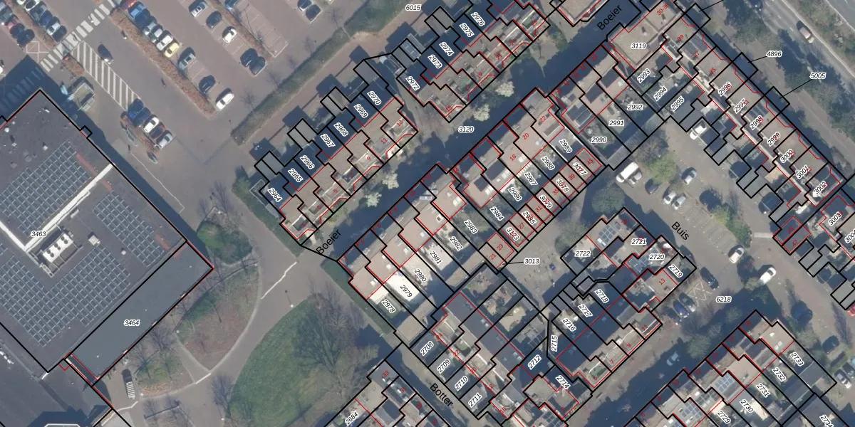 Het perceel waarop Boeier 10 staat heeft een oppervlakte van 135 m². Dit is een middelgroot perceel. De perceeloppervlakte wordt geregistreerd door het Kadaster. Gedetailleerde informatie over de maten van dit perceel kunt u vinden in het rapport Kadastrale kaart met maatvoering van Boeier 10.