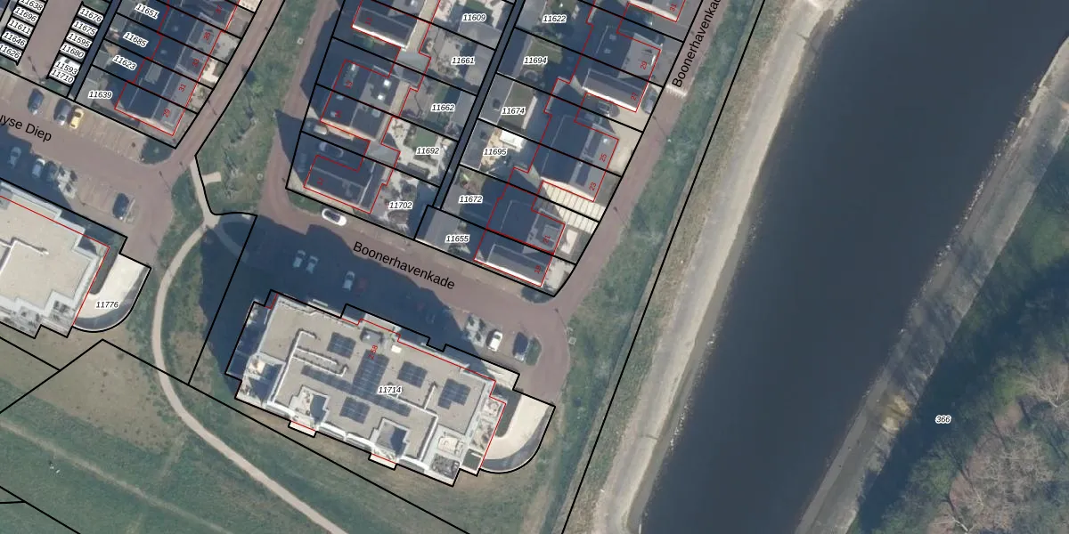 Boonerhavenkade 19 is gelegen op kadastraal perceel MSS00D11655. Deze kadastrale aanduiding is uniek en wordt gebruikt door het Kadaster om eigendomsrechten en andere zakelijke rechten vast te leggen. Het perceel maakt onderdeel uit van de kadastrale gemeente Maassluis.