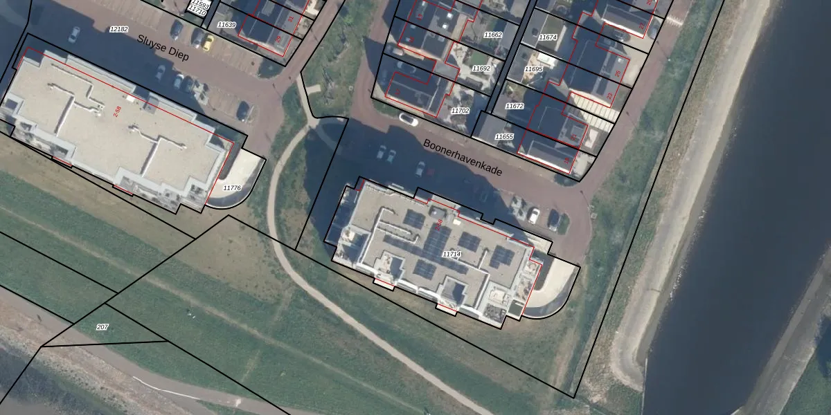 Het perceel waarop Boonerhavenkade 4 staat heeft een oppervlakte van 1289 m². Dit is een zeer groot perceel. De perceeloppervlakte wordt geregistreerd door het Kadaster. Gedetailleerde informatie over de maten van dit perceel kunt u vinden in het rapport Kadastrale kaart met maatvoering van Boonerhavenkade 4.