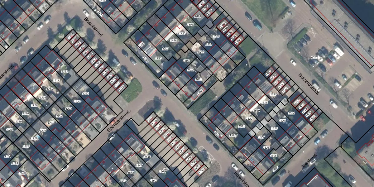 Gebruik de zoekbalk of klik op een perceel voor informatie over de adressen binnen dit perceel.