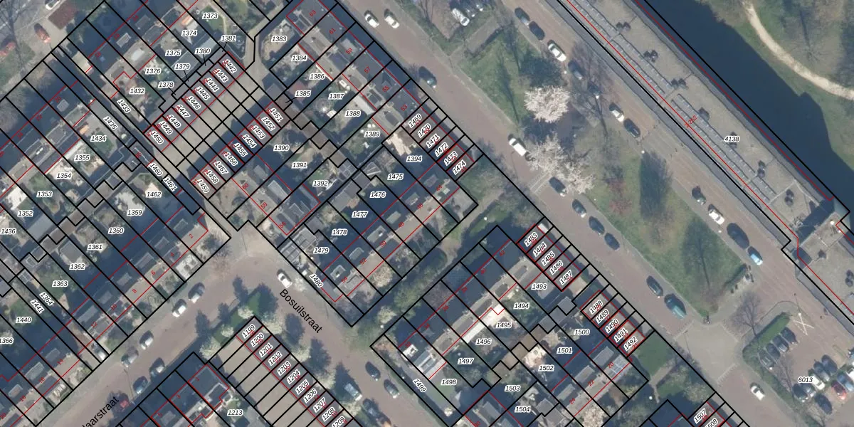 Gebruik de zoekbalk of klik op een perceel voor informatie over de adressen binnen dit perceel.