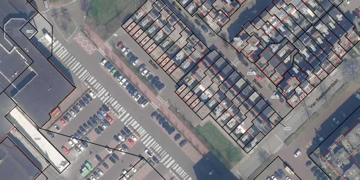 Het perceel waarop Botter 67 staat heeft een oppervlakte van 20 m². Dit is een klein perceel. De perceeloppervlakte wordt geregistreerd door het Kadaster. Gedetailleerde informatie over de maten van dit perceel kunt u vinden in het rapport Kadastrale kaart met maatvoering van Botter 67.