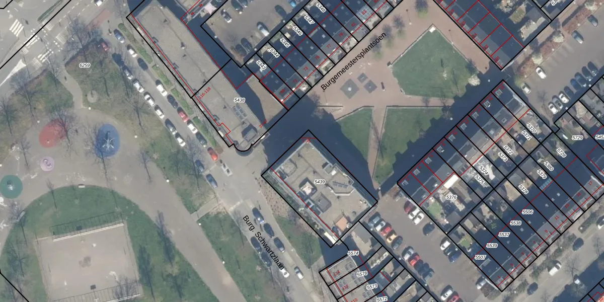 Het perceel waarop Burgemeestersplantsoen 21 staat heeft een oppervlakte van 720 m². Dit is een groot perceel. De perceeloppervlakte wordt geregistreerd door het Kadaster. Gedetailleerde informatie over de maten van dit perceel kunt u vinden in het rapport Kadastrale kaart met maatvoering van Burgemeestersplantsoen 21.