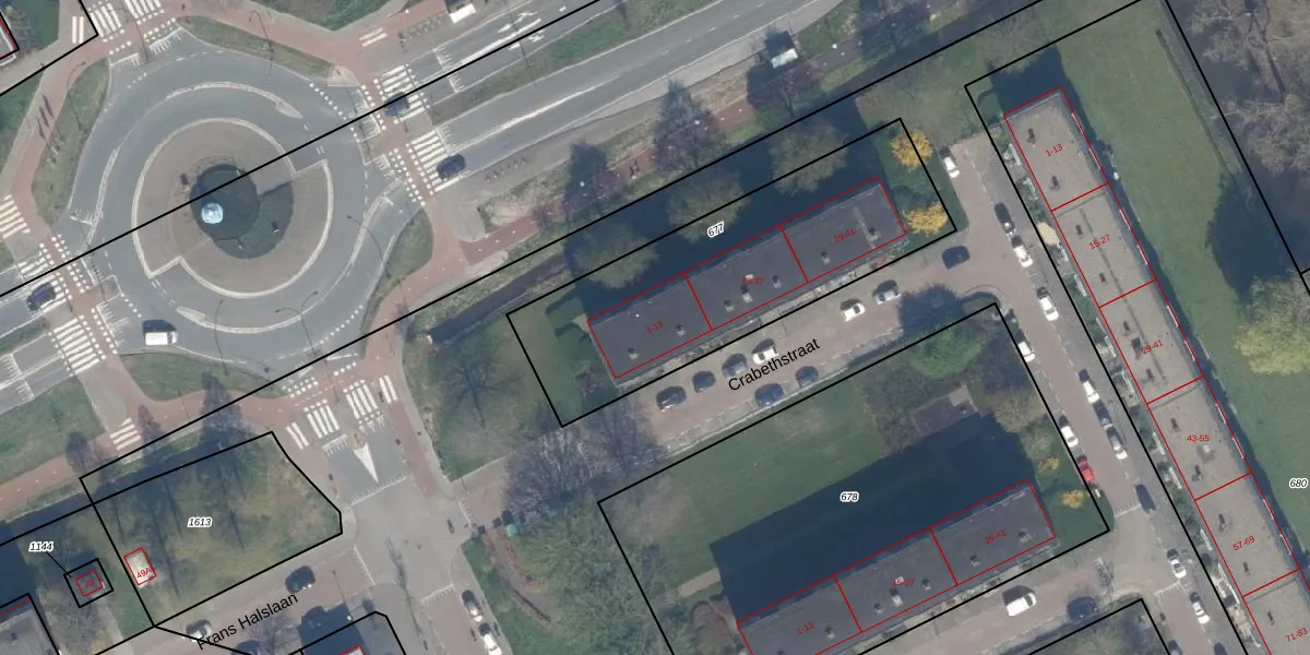 Het perceel waarop Crabethstraat 9 staat heeft een oppervlakte van 1279 m². Dit is een zeer groot perceel. De perceeloppervlakte wordt geregistreerd door het Kadaster. Gedetailleerde informatie over de maten van dit perceel kunt u vinden in het rapport Kadastrale kaart met maatvoering van Crabethstraat 9.