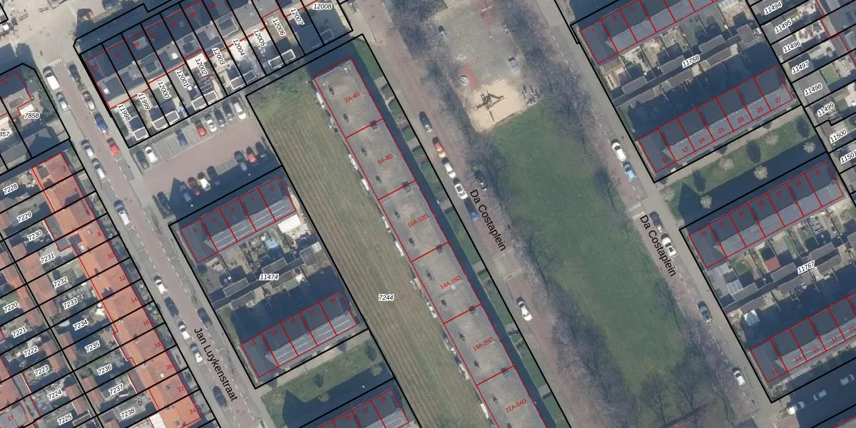 Het perceel waarop Da Costaplein 10-C staat heeft een oppervlakte van 3755 m². Dit is een zeer groot perceel. De perceeloppervlakte wordt geregistreerd door het Kadaster. Gedetailleerde informatie over de maten van dit perceel kunt u vinden in het rapport Kadastrale kaart met maatvoering van Da Costaplein 10-C.