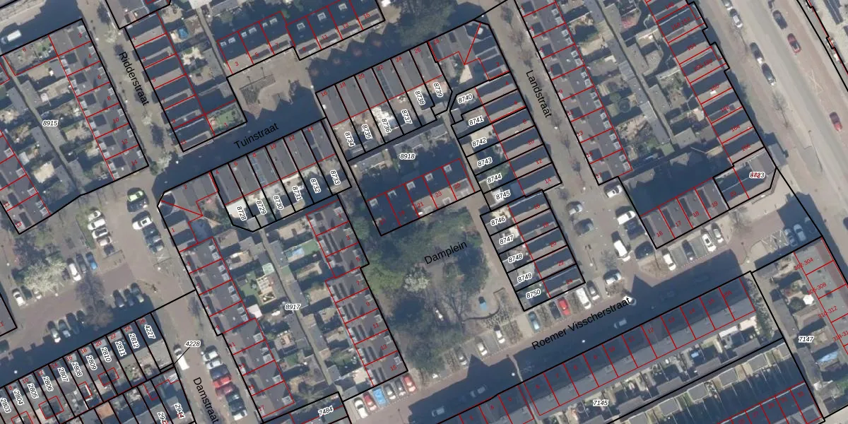 Het perceel waarop Damplein 21 staat heeft een oppervlakte van 715 m². Dit is een groot perceel. De perceeloppervlakte wordt geregistreerd door het Kadaster. Gedetailleerde informatie over de maten van dit perceel kunt u vinden in het rapport Kadastrale kaart met maatvoering van Damplein 21.