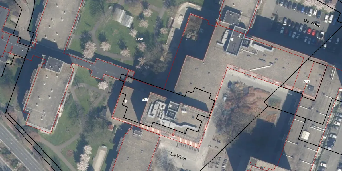 Het perceel waarop De Vloot 64-K-1A3 staat heeft een oppervlakte van 2,1 ha. Dit is een zeer groot perceel. De perceeloppervlakte wordt geregistreerd door het Kadaster. Gedetailleerde informatie over de maten van dit perceel kunt u vinden in het rapport Kadastrale kaart met maatvoering van De Vloot 64-K-1A3.